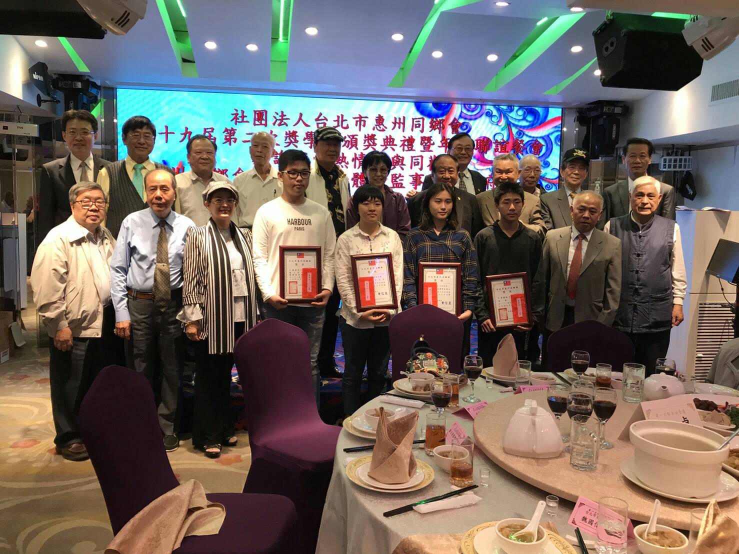 台北市惠州同鄉會第十九屆第二次獎學金頒獎典禮暨年度聯誼餐會,本(108)年4月27日上午11:30分,假台北市南京東路2段64號第一大飯店3樓敘香園餐廳舉行,當日計有貴賓、顧問、友會理事長或代表及惠州同鄉會理監事、會員、獎學金受獎同學等近60多人與會參加典禮及年度聯誼活動。特別感謝世界廣東同鄉總會甘嘉亮會長,當日放棄其他重要會議,一早由新竹搭車趕至會場參與盛會,此外中華炎黃文創教育經貿社團協會的魏國偉理事長,前晚深夜剛由大陸返台,放棄睡眠時間,亦從高雄搭早班高鐵到台北與鄉親聯誼,鞏固鄉誼的精神,殊值敬佩!