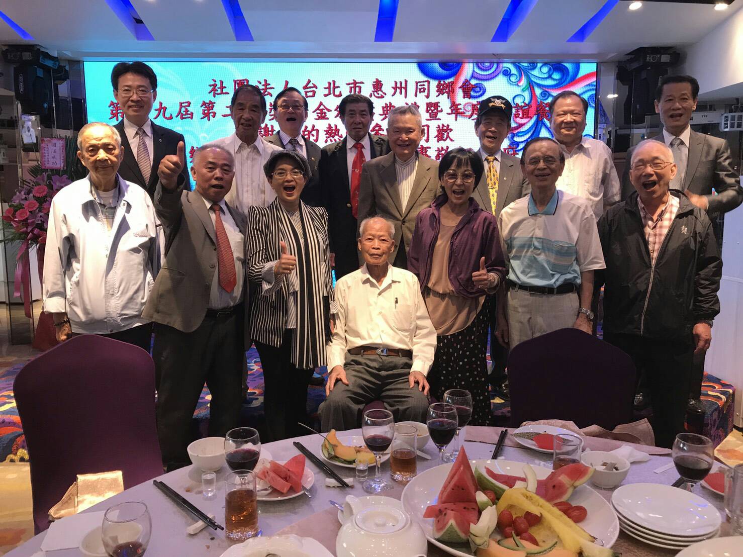 友會大家長諸如:華僑救國聯合總會鄭致毅理事長、華僑協會總會前任理事長陳三井教授及三羅同鄉會賴柏儒理事長等人亦在百忙中出席盛會, 並接受黃信麗理事長親自頒授之惠州同鄉會顧問證書。另外,大埔縣同鄉會黃東祥理事長(世廣總會副會長、本會顧問)梅州同鄉會前任理事長張世偉先生(世廣常務理事、本會顧問) 豐順同鄉會丁叔君理事長(世廣常務理事、本會顧問)潮州同鄉會林 超理事長,海南暨文昌同鄉會邢益春理事長,台山同鄉會李沛珍理事長,平遠同鄉會林政吉理事長、世廣常務理事羅大榮先生(大埔同鄉會前任理事長、本會顧問),世廣常務理事古龍建將軍(梅縣同鄉會前任理事長、本會顧問)欽廉同鄉會代表謝餘飛常務理事,惠州同鄉會榮譽副會長鄒日章先生,常務理事陳有用、蔡傑智、潘英穗、黃金信(博羅同鄉會理事長)及潘盛京顧問(惠州同鄉會前任理事長) 鄒陪強顧問、何其忠理事、潘英陽理事、黃滋光理事、黃振漢理事、李友蘭監事等理監事及會員都共襄盛舉與會和鄉親見面聚會,齊聚一堂,談笑風生,和樂融融,足謂惠州年度團結廣東鄉親的大聯誼,圓滿成功。