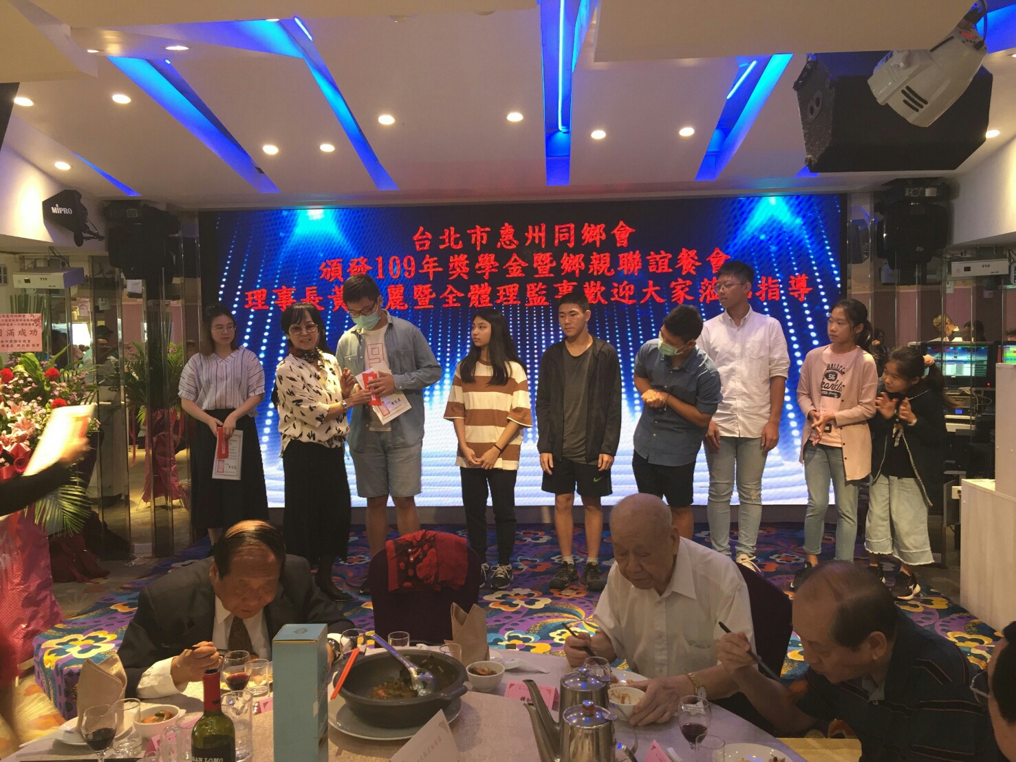 頒獎典禮上貴賓致詞時,都期勉受獎同學要珍惜求學生涯,努力充實自己,將來除了奉獻所學千萬別忘記回饋同鄉會。頒獎典禮中讓人印象深刻的是,本會傑出優秀的青年創業楷模,2018年12月在美國紐交所掛牌上市,騰訊音樂集團副總裁、愛聽卓樂CEO的潘才俊鄉親專程回台參加盛會,致詞分享了求學及創業經驗,把吃苦當作吃補,並鼓勵大家要積極聯繫親情、鄉誼,一番刻苦自立的話對年輕學子激勵甚多,也讓會場賓客感受到這位青年才俊的謙卑、熱情及厚道。黃信麗理事長致詞時表示,感謝各位貴賓百忙中撥冗參加頒發獎學金典禮及聯誼餐會,充分顯示惠州鄉親具有大度精神,願與友會保持良好關係,未來繼續充分合作,共創和諧、凝聚粵屬同鄉會的團結精神,鞏固鄉誼。頒獎典禮暨年度聯誼,於當天下午14時30分圓滿完成,黃信麗理事長暨全體理監事感謝大家參加盛會,並祝福闔府康寧! 明年再見!