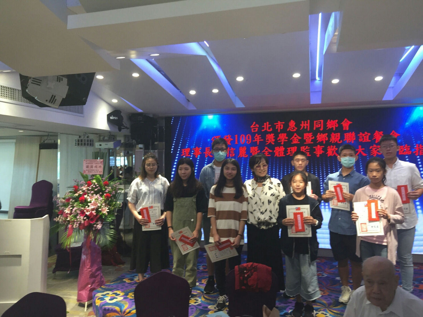 台北市惠州同鄉會109年的盛事,舉辦第二十屆第一次獎學金頒獎典禮暨年度聯誼餐會及頒發顧問證書,109年9月20日上午11:30分,假台北市南京東路2段64號第一大飯店3樓敘香園餐廳舉行,當日計有貴賓、顧問、友會理事長或代表及惠州同鄉會理監事、會員、獎學金受獎同學等近百人與會參加頒獎典禮及鄉親聯誼,鞏固鄉誼的精神,殊值敬佩!