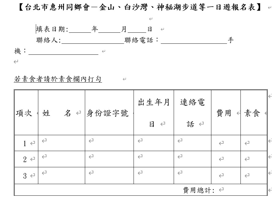 ※另有關本110年11月13日一日遊報名表(本表可至網頁最下方自行下載附加檔案)