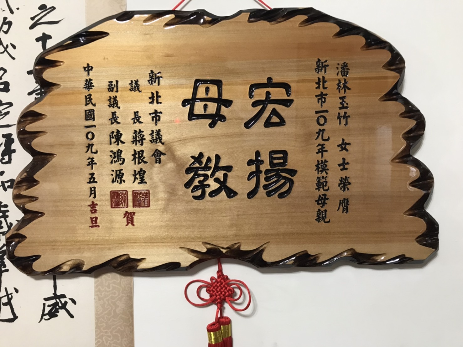 潘林玉竹女士獲選新北市模範母親,可謂實至名歸,並由新北市長侯友宜親自頒贈獎牌,也接受電視台的訪問,暢談人生觀,此不僅是潘家之光,也是惠州之光。她一手孕育的潘才學、潘才敏、潘才玲三位子女皆在本屆進入惠州同鄉會理、監事行列服務,為鄉親服務,倍感榮耀,既是社會之福,亦是惠州之福,她樂善好施及活到老學到老的精神是值得鄉親們學習的榜樣。