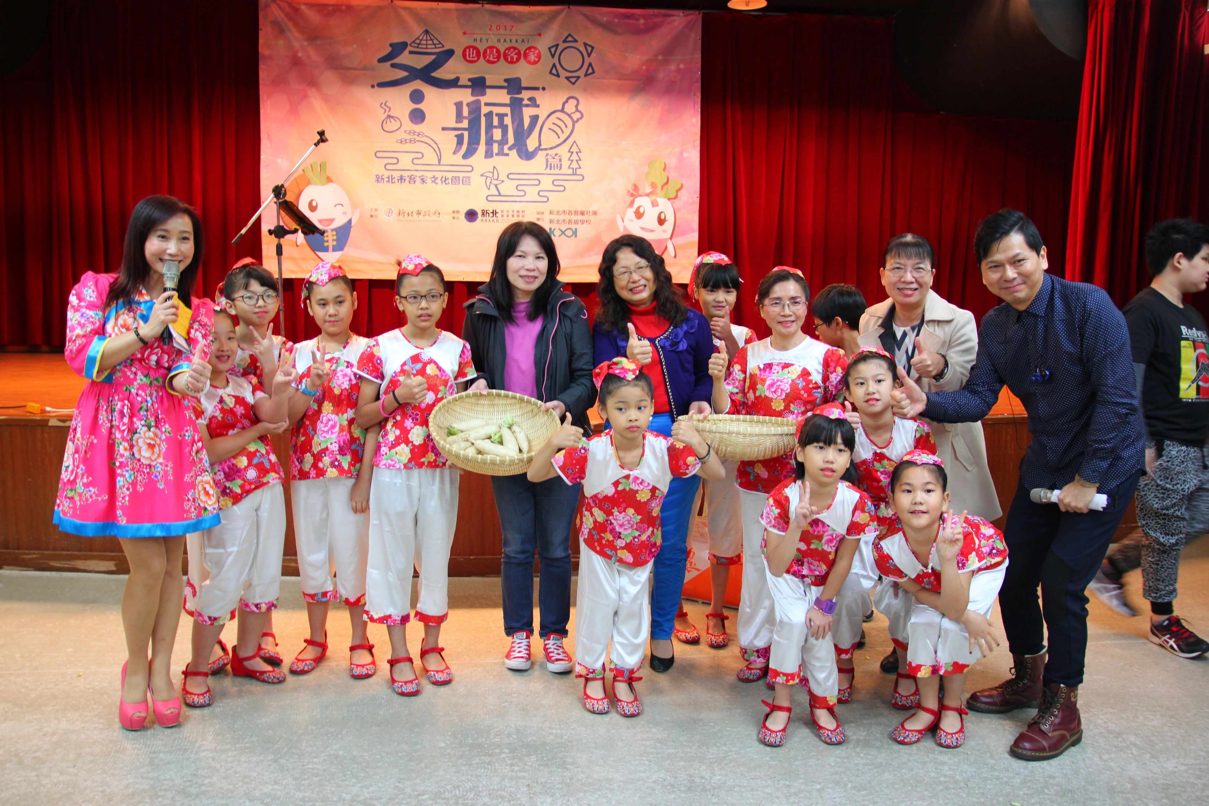 新北市客家局也是客家-冬藏活動熱鬧滾滾,12月16日逾千位民眾不畏雨勢聚集新北市客家文化園區,欣賞勁歌熱舞的音樂會,享用免費限量蘿蔔糕、蘿蔔魚丸湯,更體驗蘿蔔菜包、醃蘿蔔DIY及蘿蔔蹲等趣味競賽,讓市民朋友在都會中也可體驗客家樸實文化,且體驗動手做的樂趣之餘,還能感受蘿蔔料理的溫暖與美味,蘿蔔party大成功!
